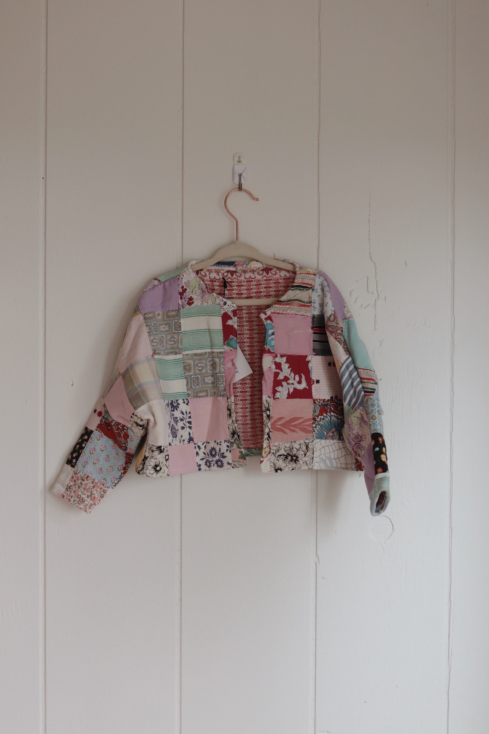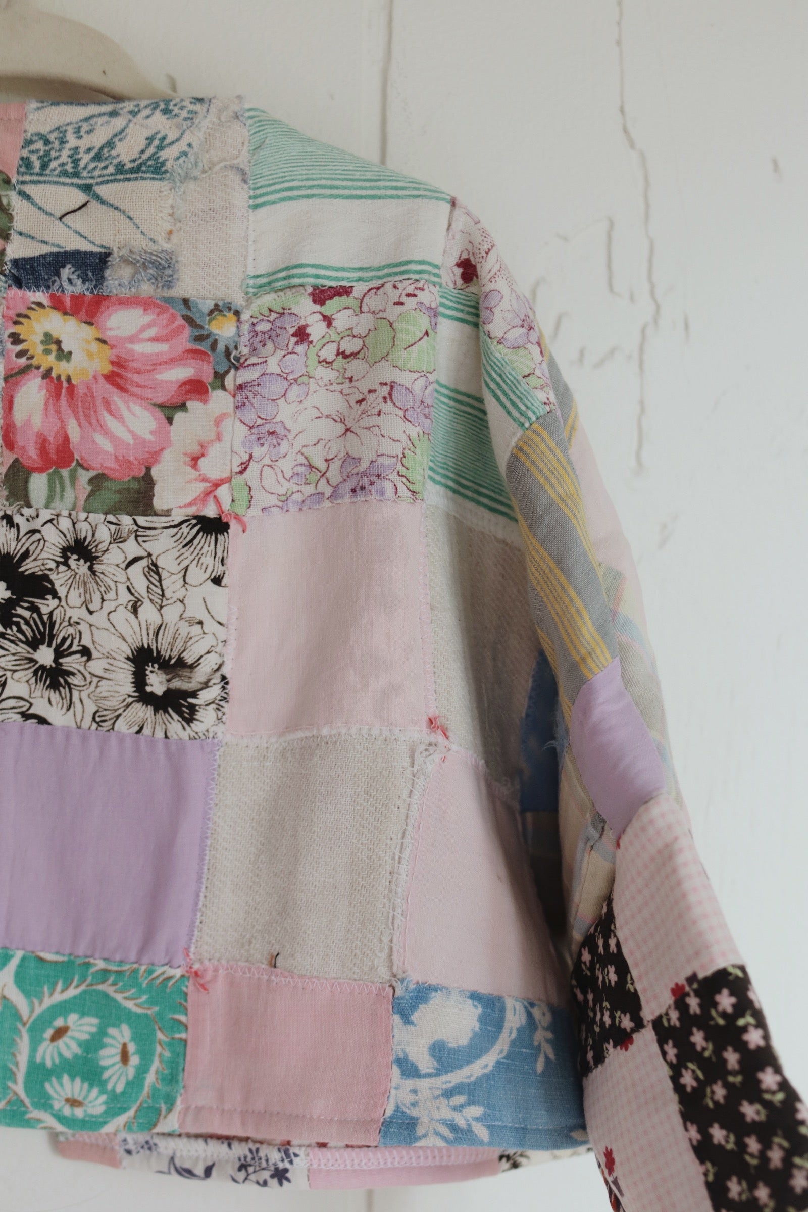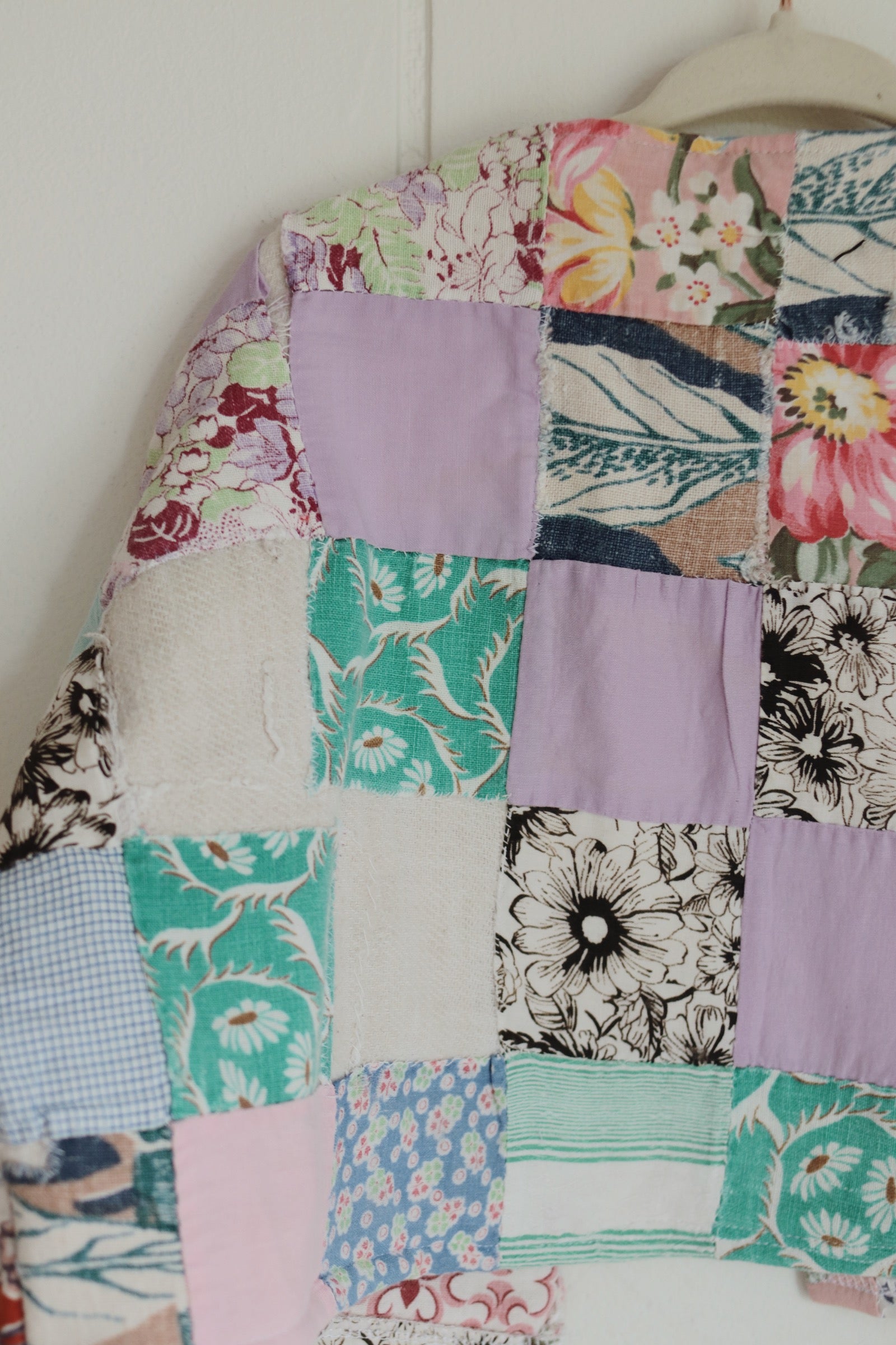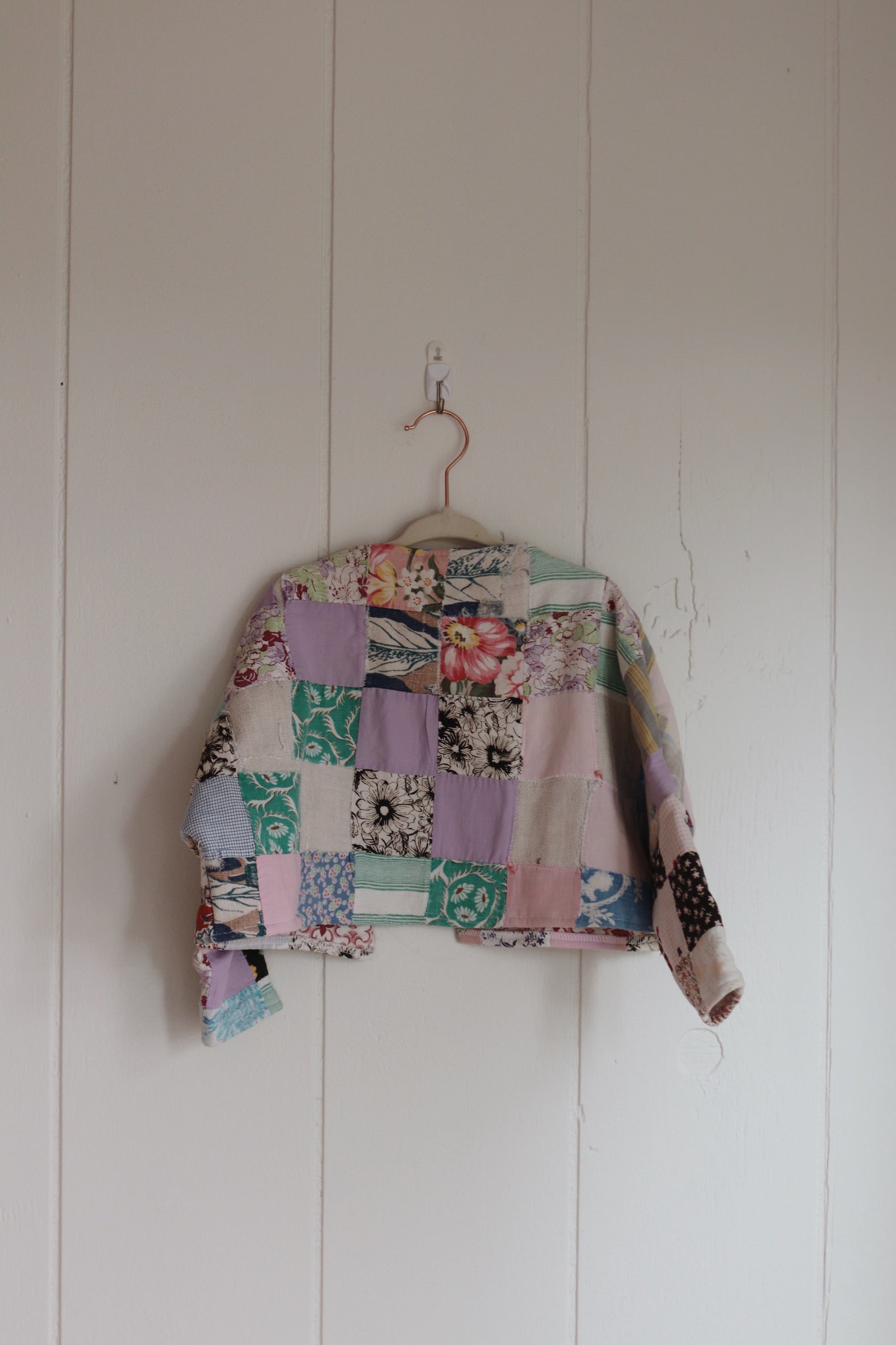 size 2T quilt coat, a bit tattered, mended for durability