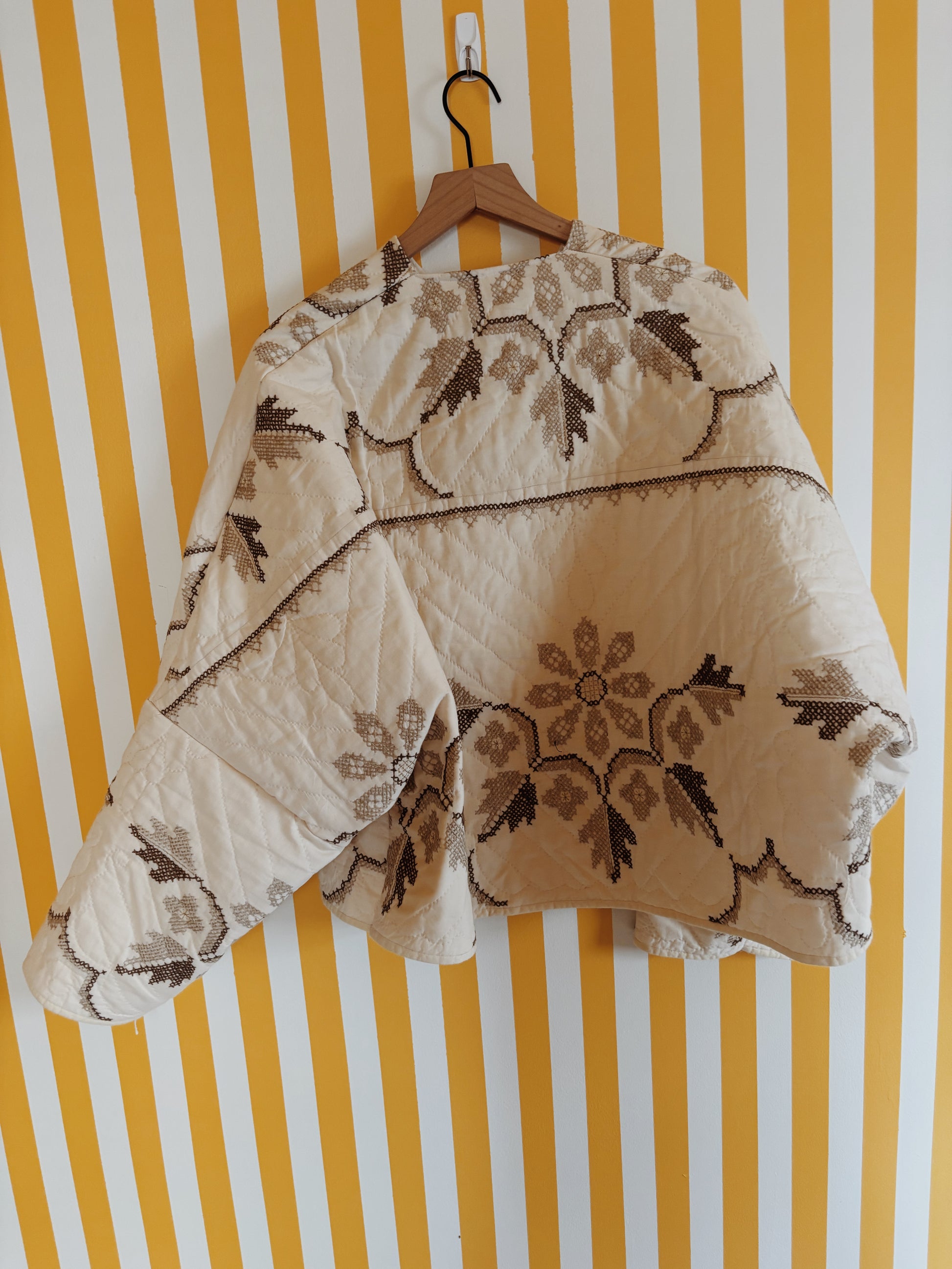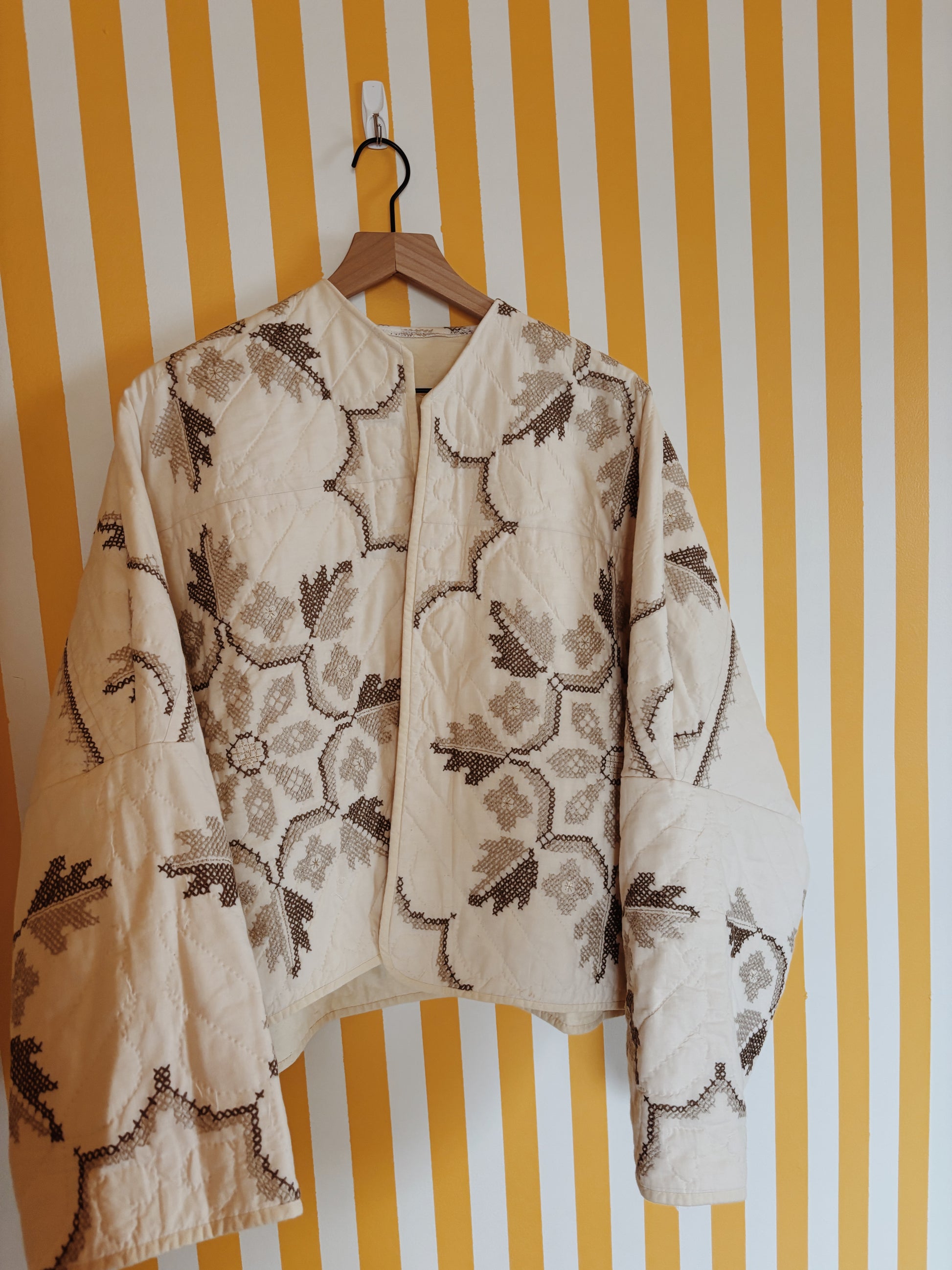 cream embroidered quilt coat