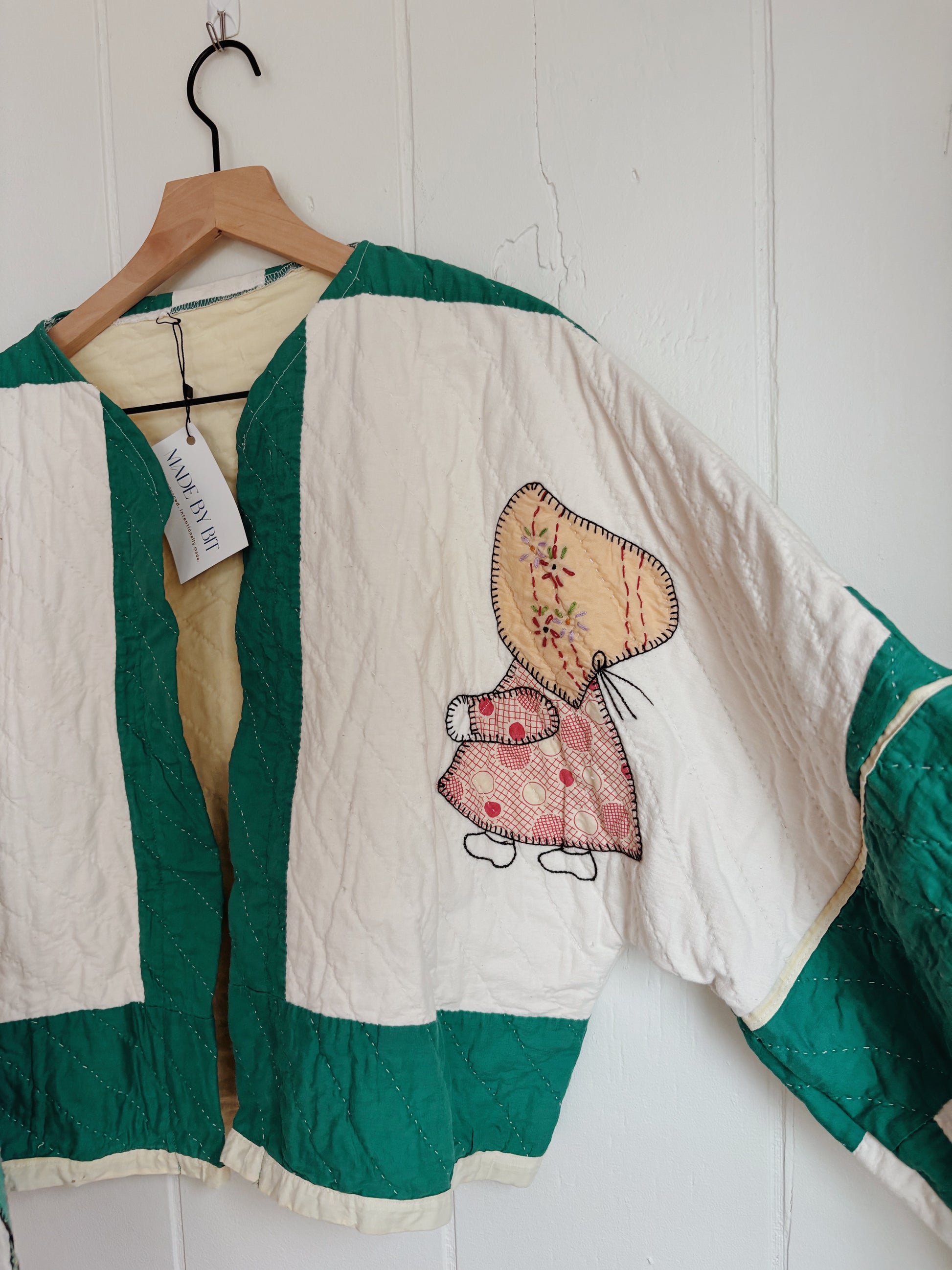 ** all of my coats are made from vintage or antique quilts, with this there may be some damage and/or discoloration from the original quilt, anything significant will be patched and/or noted. If you have any questions about a coat please feel free to email me at bit@madebybit.com or message me on instagram @madeby.bit.